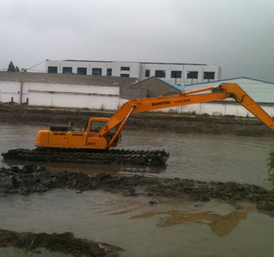 - 可在水深1米以內的河道與海灘中作業(yè)。超過1米水深的作業(yè)環(huán)境,可根據(jù)客戶要求進行特別設計及制造。產(chǎn)品對特種作業(yè)環(huán)境的適應能力,其他類型的挖掘機無法替代,被海內外客戶譽為“水中挖掘之王”。
